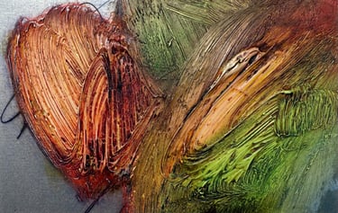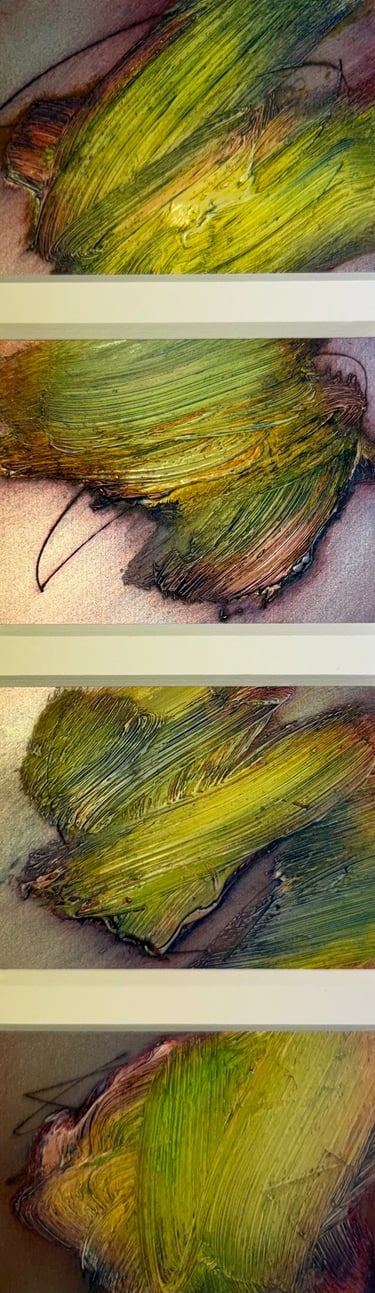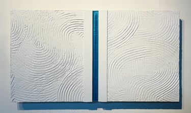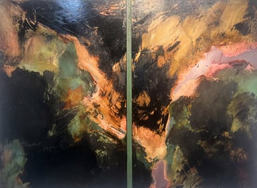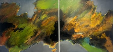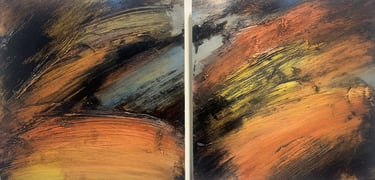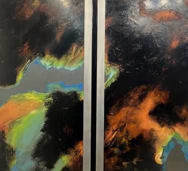 These drawings of charcoal and paint on paper describe the inherent conflict as we struggle to find meaning in chaos.