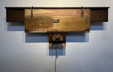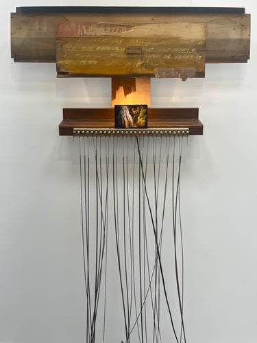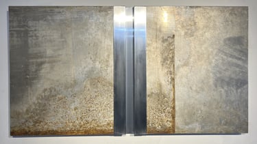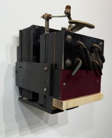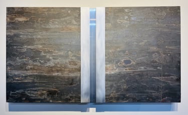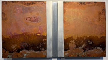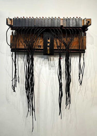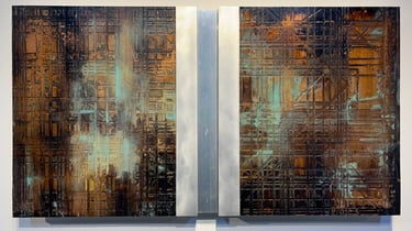 Divisions from circuits to borders are the focus of this series which employ copper, wood, aluminum, lead among other materials.